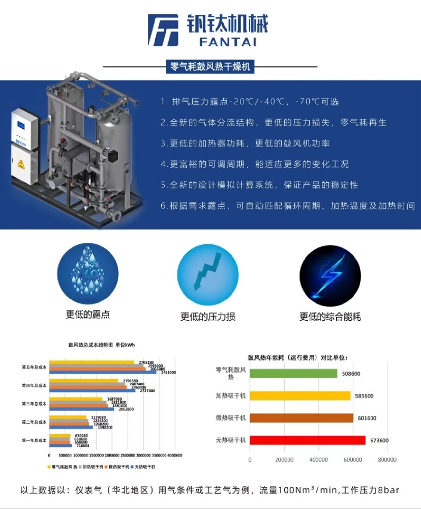 FMG-ZP型零气耗鼓风热加热再生吸附式压缩空气干燥机